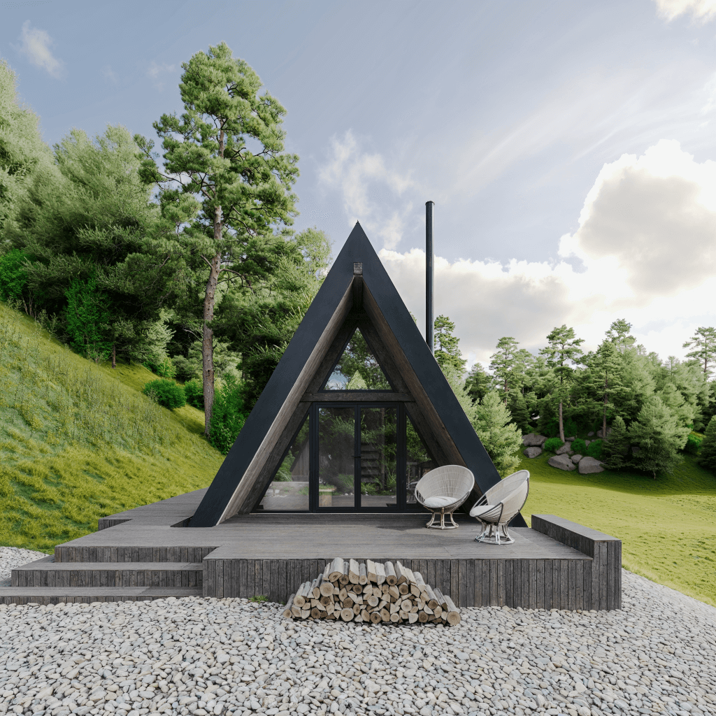 Moderní A-Frame Tiny House pro bydlení, odpočinek a rekreaci