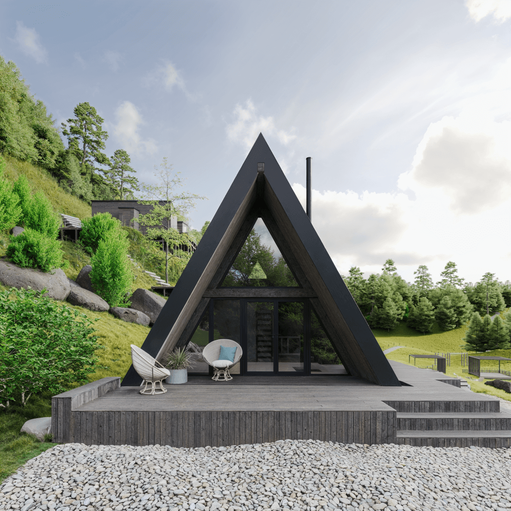 Moderní A-Frame Tiny House pro bydlení, pohodlný odpočinek a rekreaci